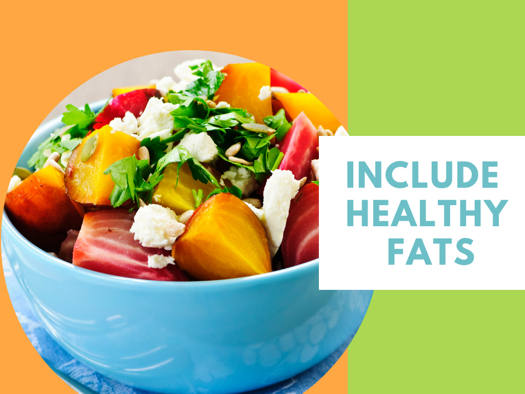 Rather, add healthy fats to your food like extra virgin olive oil, flaxseed, walnuts, almonds, avocado, salads, smoothies, and more.