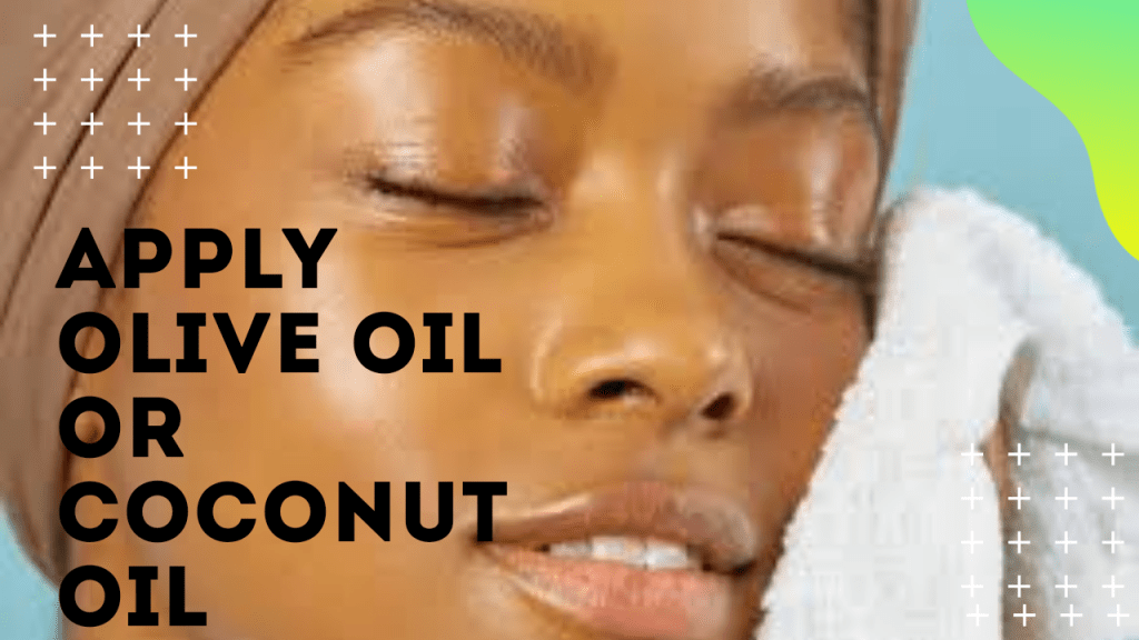 Apply Olive oil or coconut oil mixed with water to make a liquid. pour the oil into a bowl, dip a cloth in it and rub it gently onto your face for a few minutes then continue with your normal skincare routine.